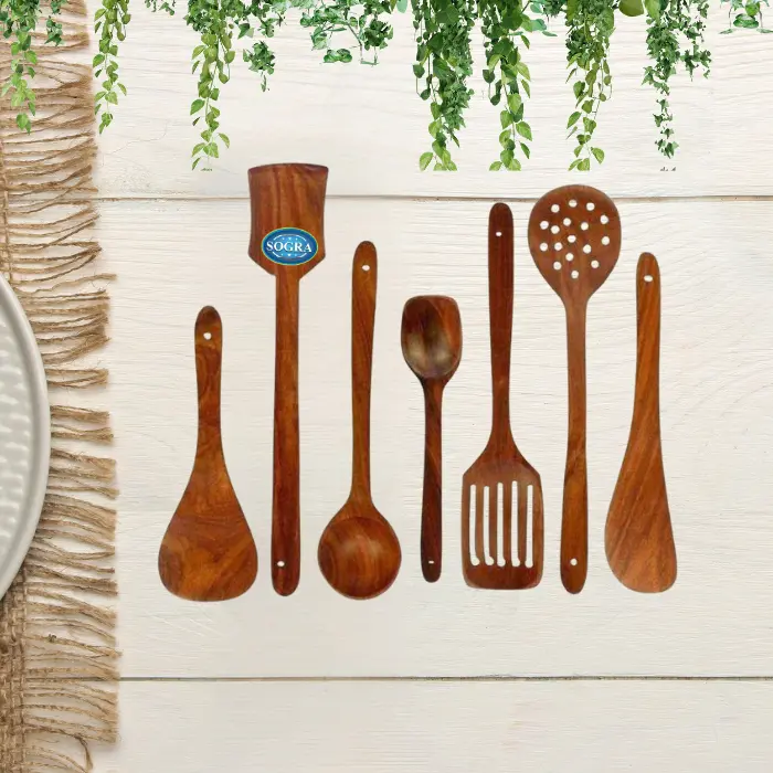Description:- Crafted from premium Neem Wood, these spatulas and ladles are designed for healthy cooking and long-lasting durability. Known for its natural antibacterial properties, Neem Wood ensures safe and hygienic use in every kitchen. Each piece is carefully handmade by skilled artisans, offering both functionality and elegance. Our wooden kitchen utensils are ideal for stirring, mixing, sautéing, and serving, without scratching non-stick cookware. Perfect for everyday use in homes, hotels and restaurants.