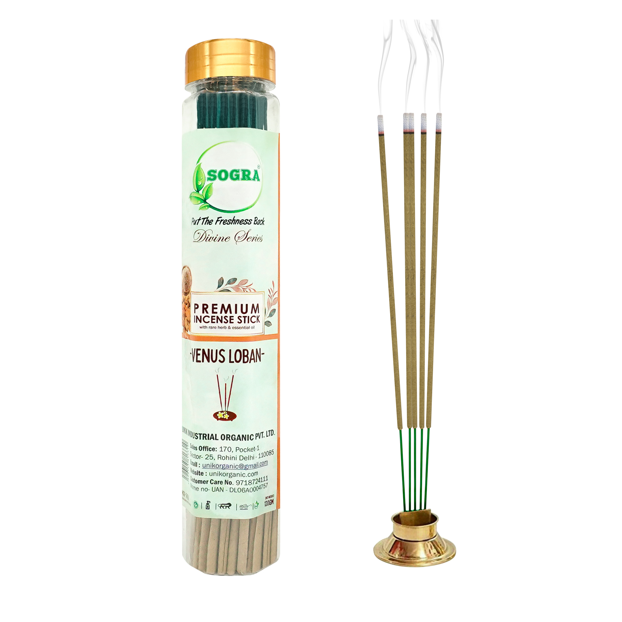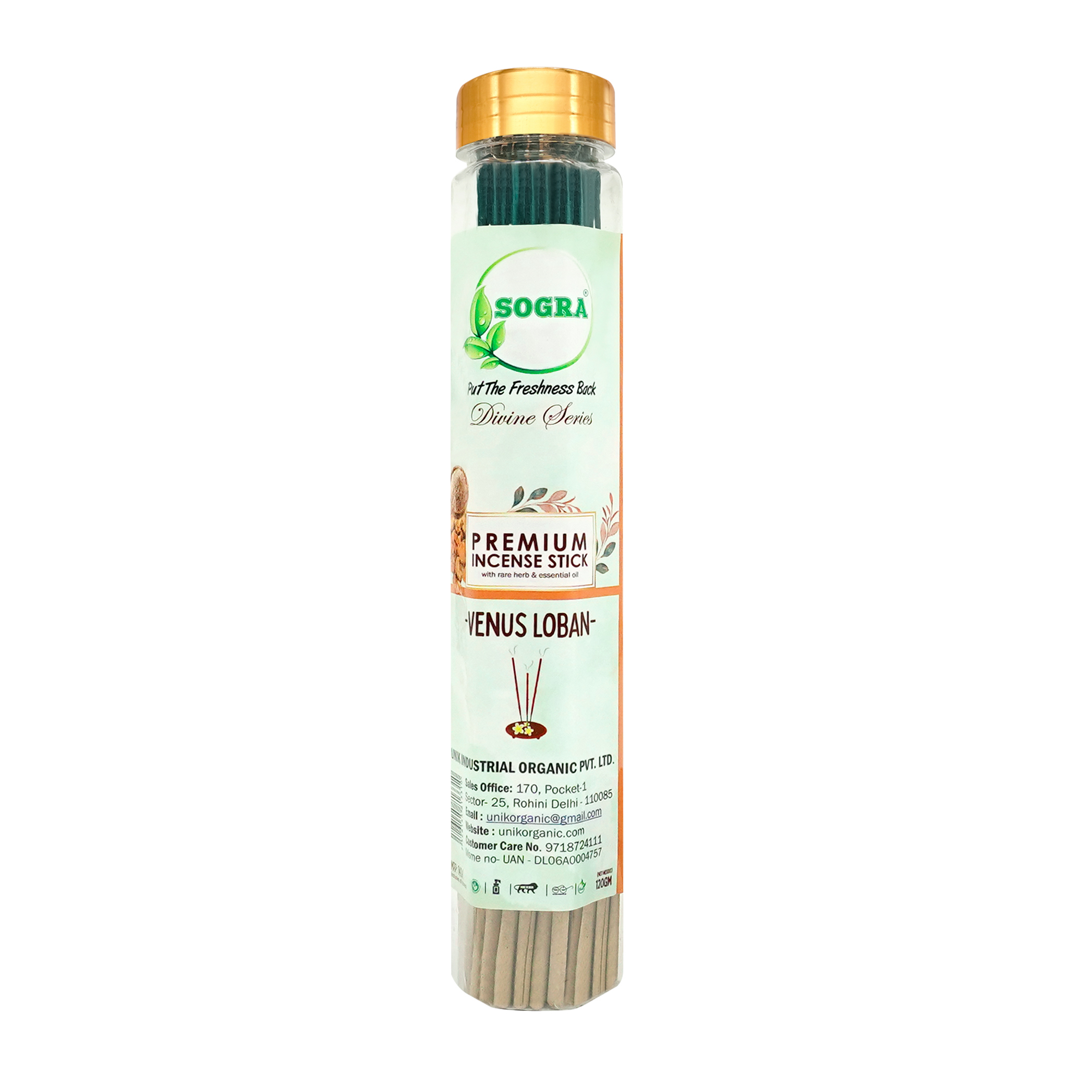 Description:- Sogra presents the Venus Loban Incense Stick, crafted from natural loban resin blended with traditional herbs to deliver a purifying and spiritual fragrance. Widely used in temples, homes, and meditation centers, these incense sticks help cleanse the environment, ward off negative energy, and promote relaxation. As a trusted incense exporter, Sogra ensures superior quality with customizable packaging and reliable bulk supply.