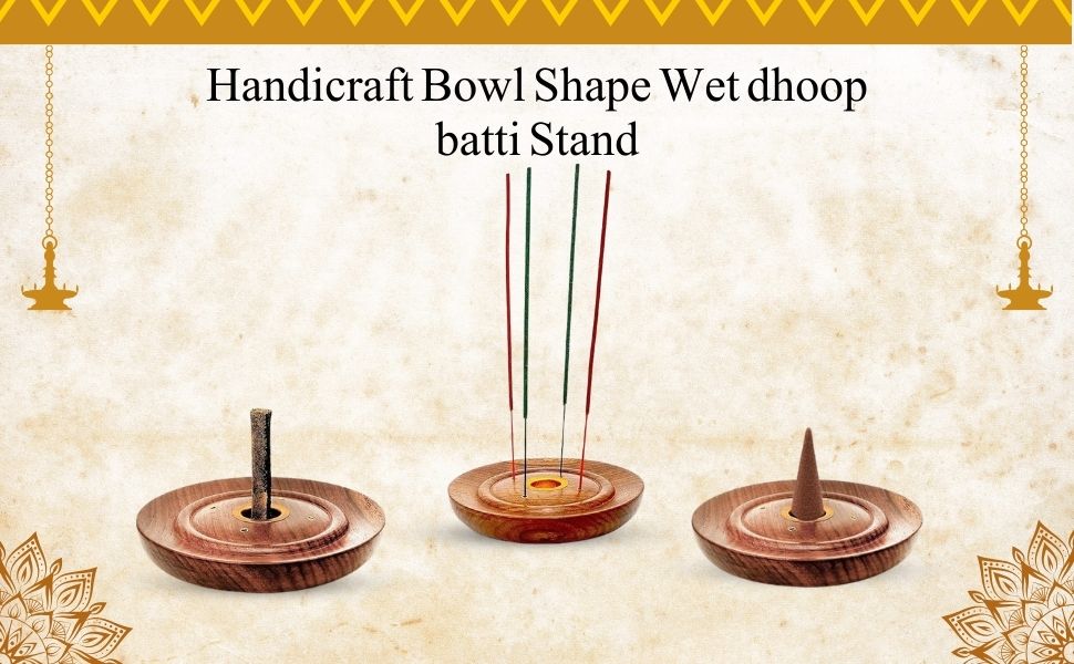 - Sogra Wooden Handicraft Bowl Shape Wet Dhoop Batti Stand. Made from high-quality wood, known for its durability and beauty