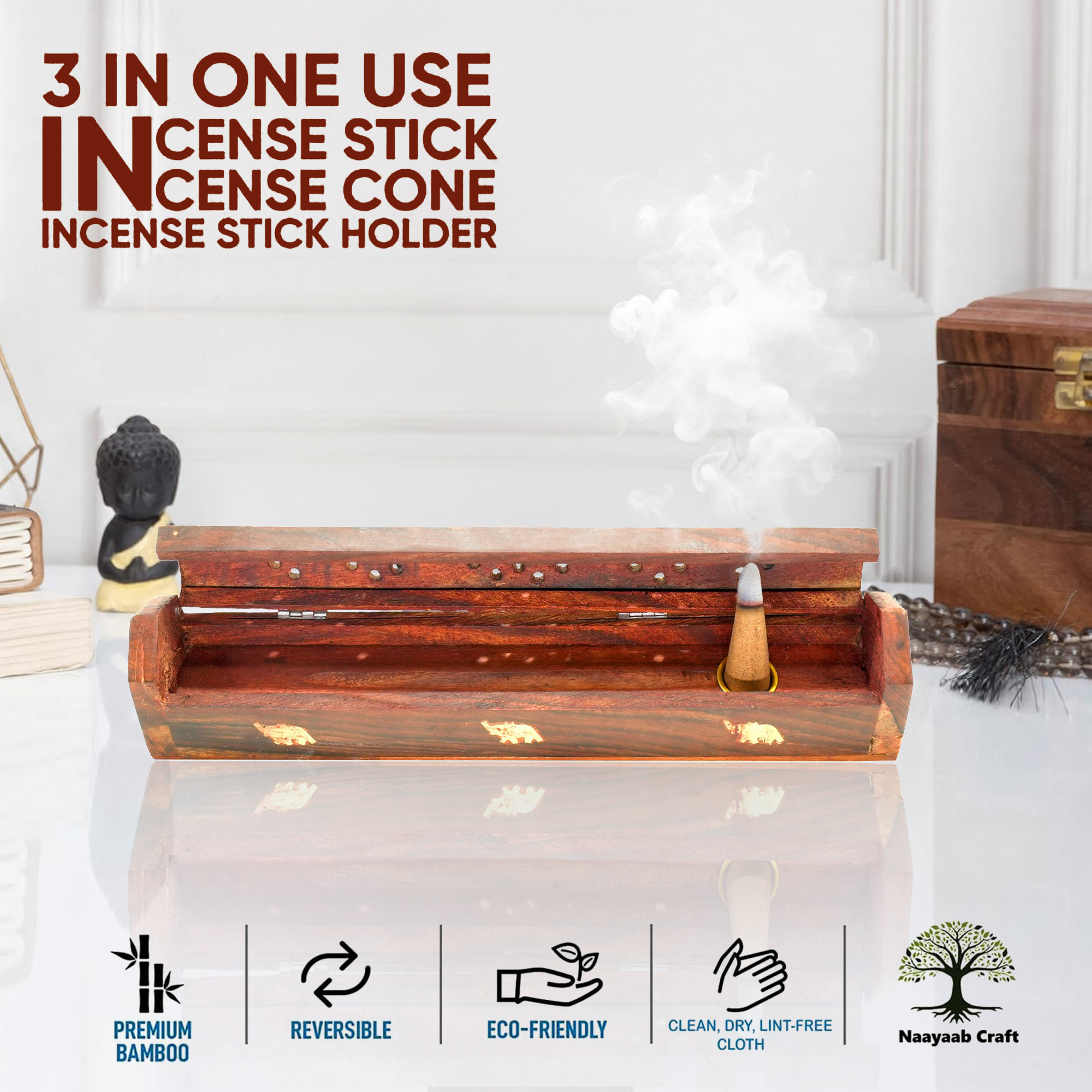 - Dhoop Agarbatti Stick Wooden Box Holder Stand: Designed to hold both dhoop and agarbatti sticks securely in place
