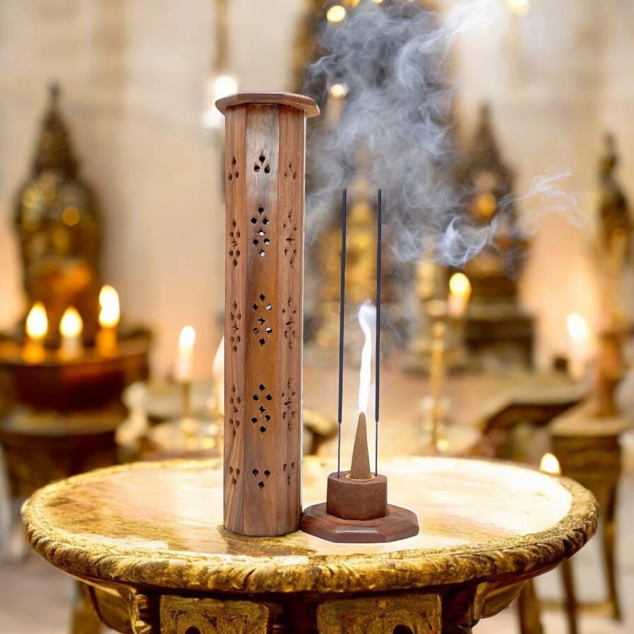 - Functionality and Decor: Combines practicality (holding incense and dhoop sticks) with decorative elements, making it a functional yet visually appea