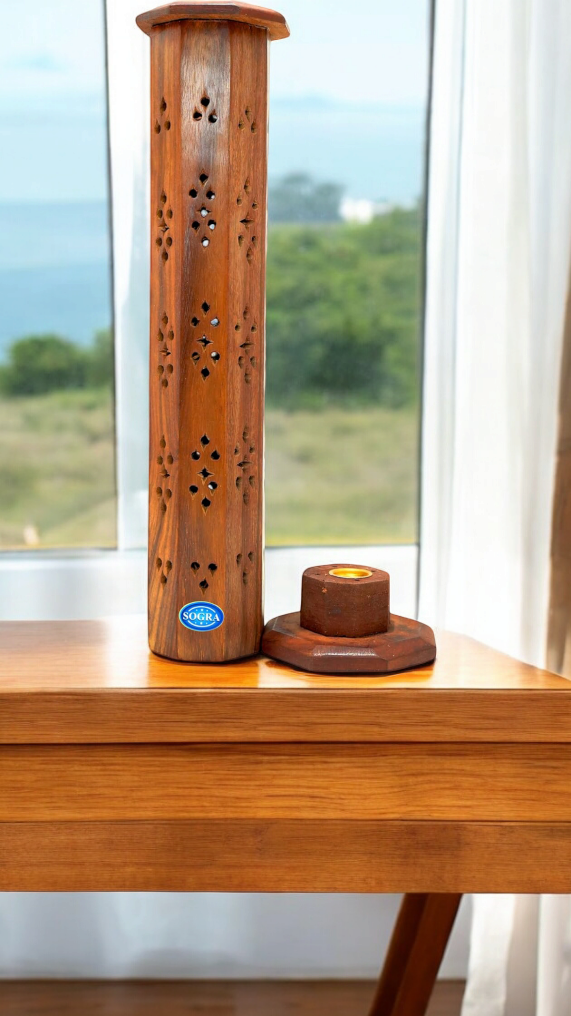 - Sogra Teak Wood Agarbatti Stand: A holder made from teak wood, specifically designed to hold incense sticks (agarbatti) and dhoop sticks.