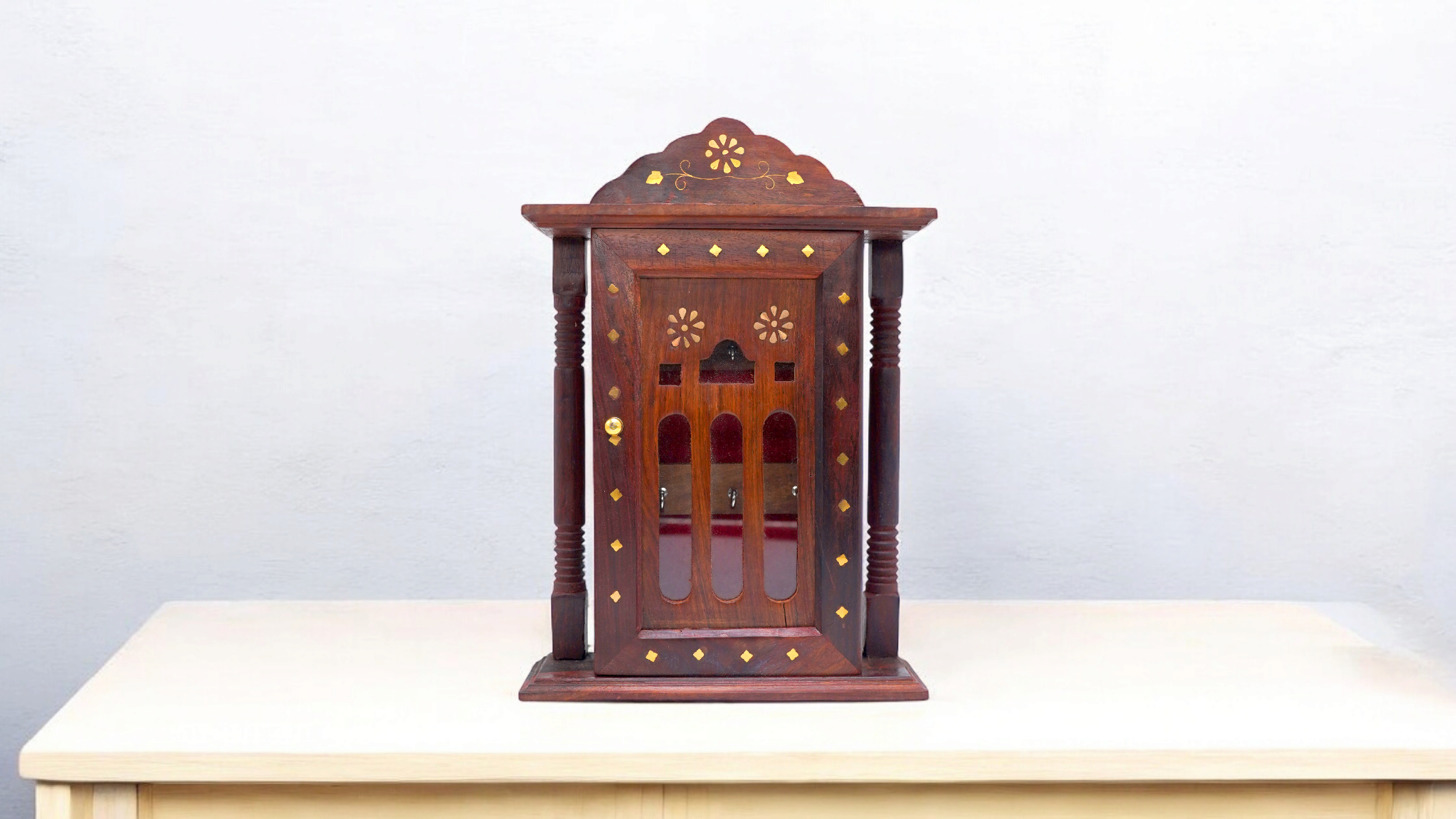 Description :- Keep Your Keys Organized in Style with our elegant Wooden Key Holder, a practical and decorative solution for your home or office. A perfect fusion of utility and ethnic charm, this key holder adds a touch of Indian artistry to your home, hotel, or office decor. Ideal for gifting, interior decor retail, or bulk hospitality supply across Dubai (UAE), London (UK), and New York (USA).